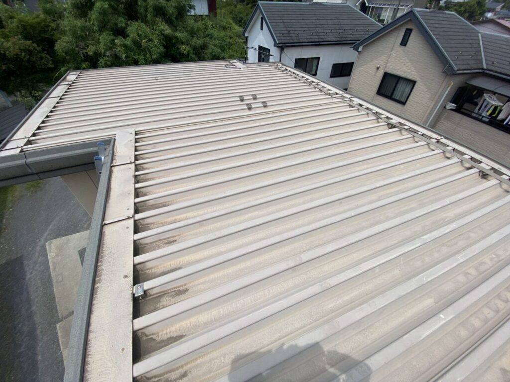 初回の現地調査の際にお施主様から、金属製の折半屋根ということもあって2階の部屋の中の暑さについてご相談をいただいたので今回遮熱塗装のご提案をさせていただきました。