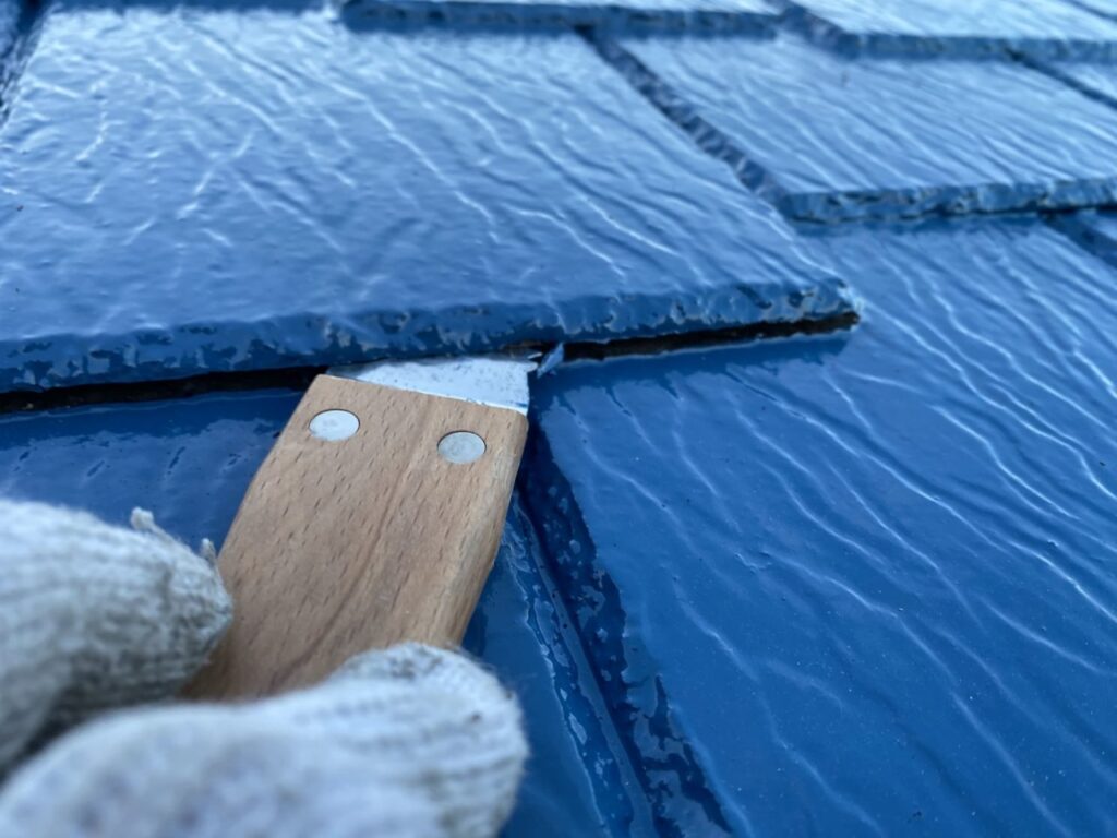 屋根塗装の際に屋根材の重なり部分が塗膜で塞がってしまうため、タスペーサーやカッターなどで塗膜を切り、水や湿気の逃げ道を確保する作業です。雨漏りや屋根裏の腐食を防ぐために重要な工程です。