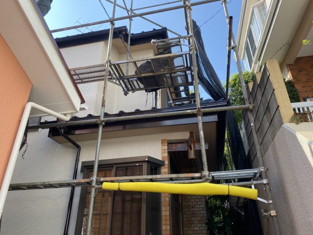 本日は工事中のお家で一軒、足場の解体作業を行いました。
