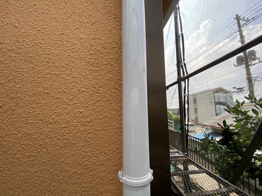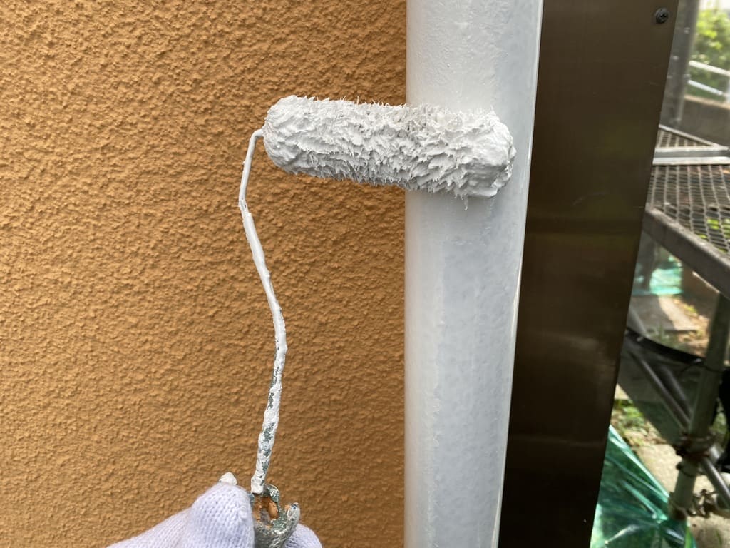 そして同時に雨樋など、付帯部の上塗りも行なっています!