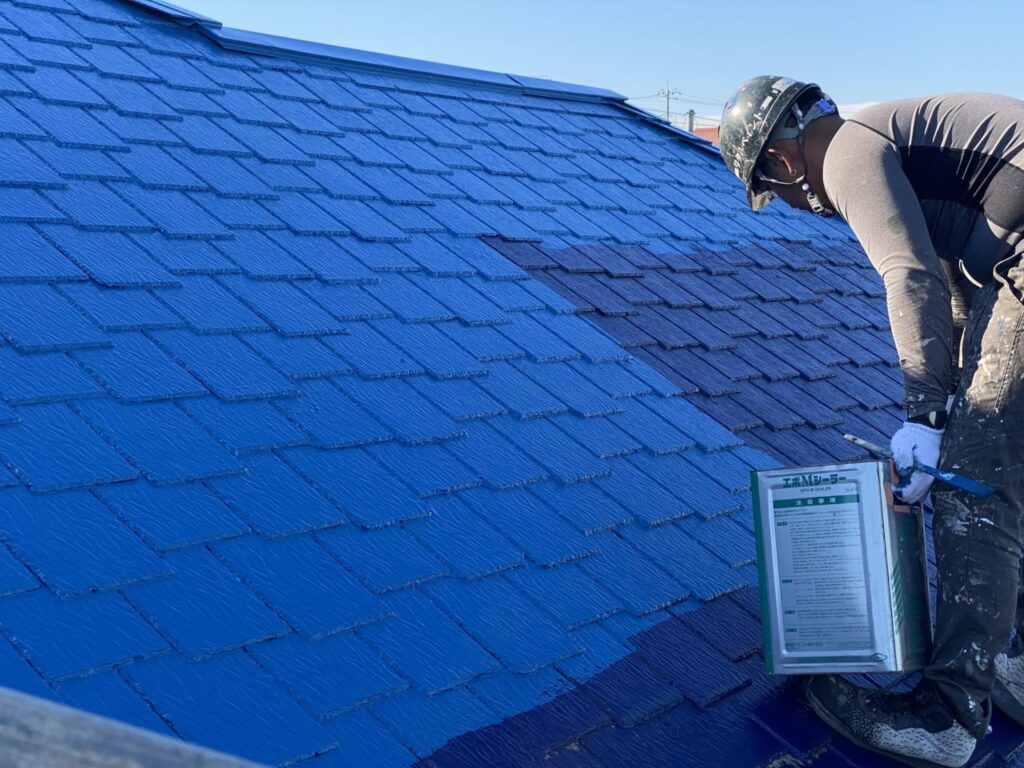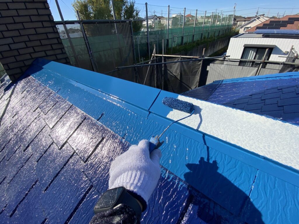 昨日に引き続き、本日も屋根塗装を行いました。