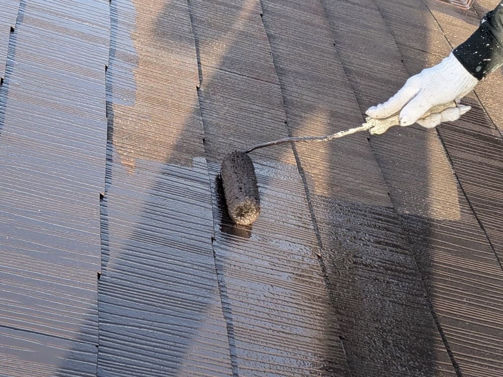 前回に続いて、本日は屋根塗装の仕上げ作業の様子をご紹介いたします!
