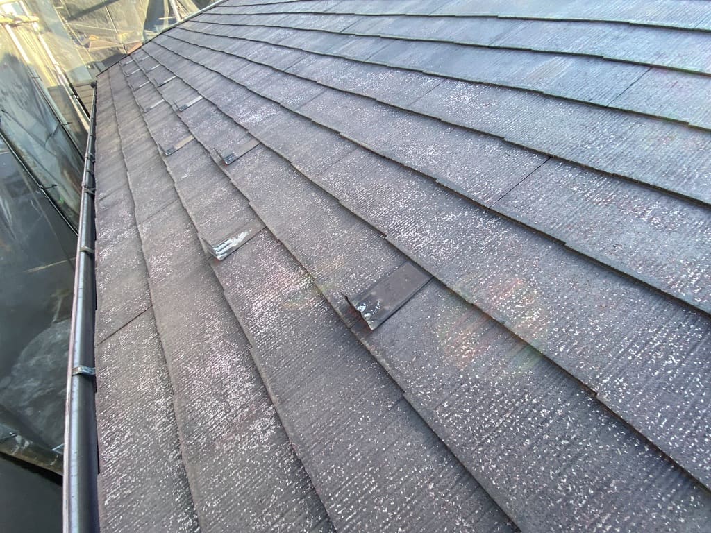 中塗りが終わると、ガラッと雰囲気が変わり、あれほど傷んでいた屋根が綺麗になりましたね!