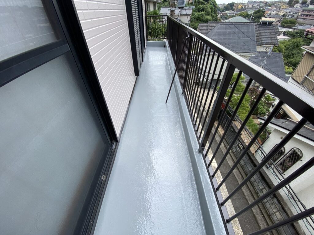 足場の解体後には、足場の柱が立っていて塗れていなかった床の一部を綺麗に仕上げて全ての作業が終了しました。