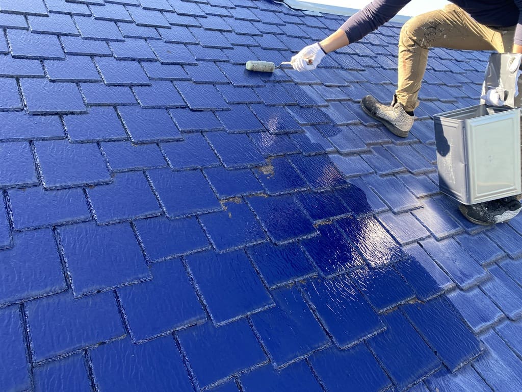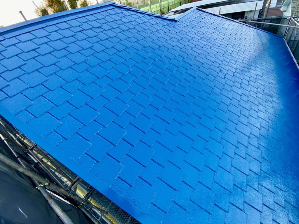 スレート屋根・モルタル外壁を上品なブルーに塗り替えました!