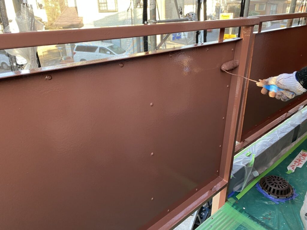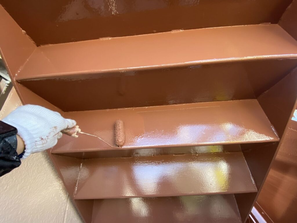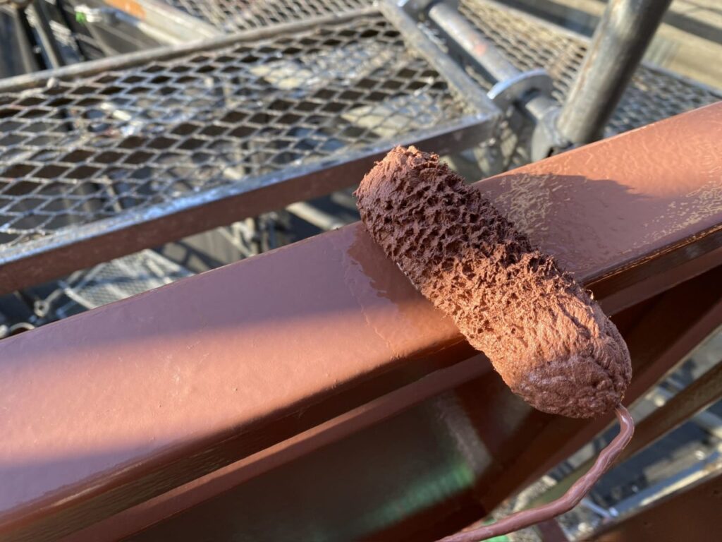 今日の作業は鉄骨階段など鉄部の上塗りを行いました!