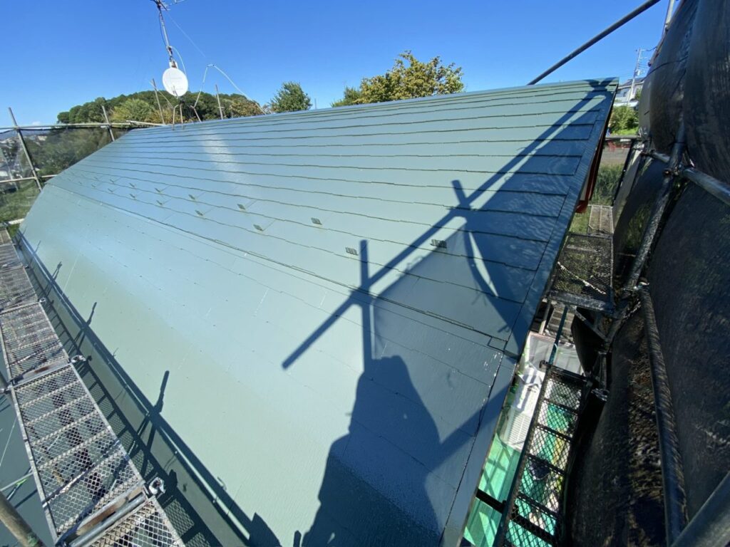 代表親方ブログ鮮やかな「ボローニャグリーン」の屋根に仕上がりました!こんにちは!ワタルペイントの髙橋です。本日は昨日に引き続き、上菅田町のお客様のお家で屋根塗装を行いました。日本ペイントの「ファインパーフェクトベスト」という高耐候塗料を使って仕上げてまいりました。工事開始前の打ち合わせの際には「モスグリーン」と「ボローニャグリーン」で迷われていたお客様でしたが、最終的にはボローニャグリーンを採用しました!「明るくて綺麗だね!こっちの色にして正解だったわ♪」とご満足いただけて僕たちもとっても嬉しいです!次週は外壁の塗装もお楽しみに!無料お見積はこちら