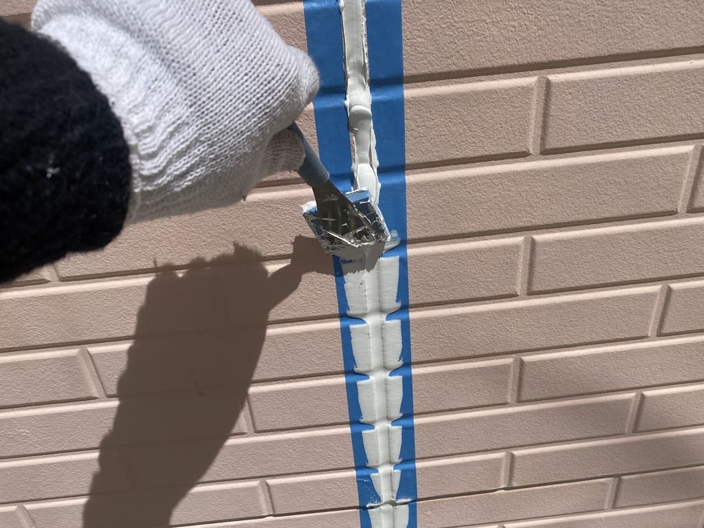建物に隙間があれば、当然雨水が侵入してしまいますので、そういった部分から雨水が侵入してくることを防ぐ為にコーキングで隙間をしっかりと埋めて、建物の防水性能を高めています。