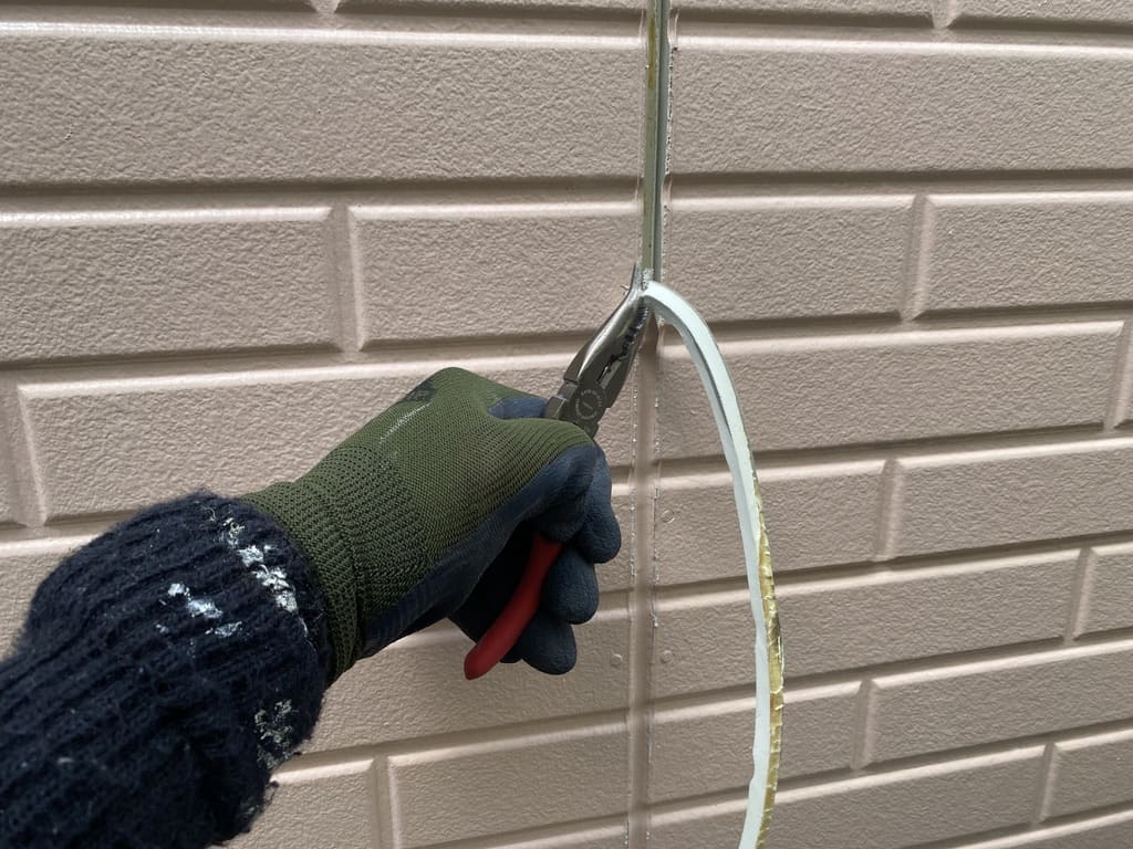 古くなった既存のコーキングをカッターやペンチ等の道具を使って綺麗に剥がしていきます。