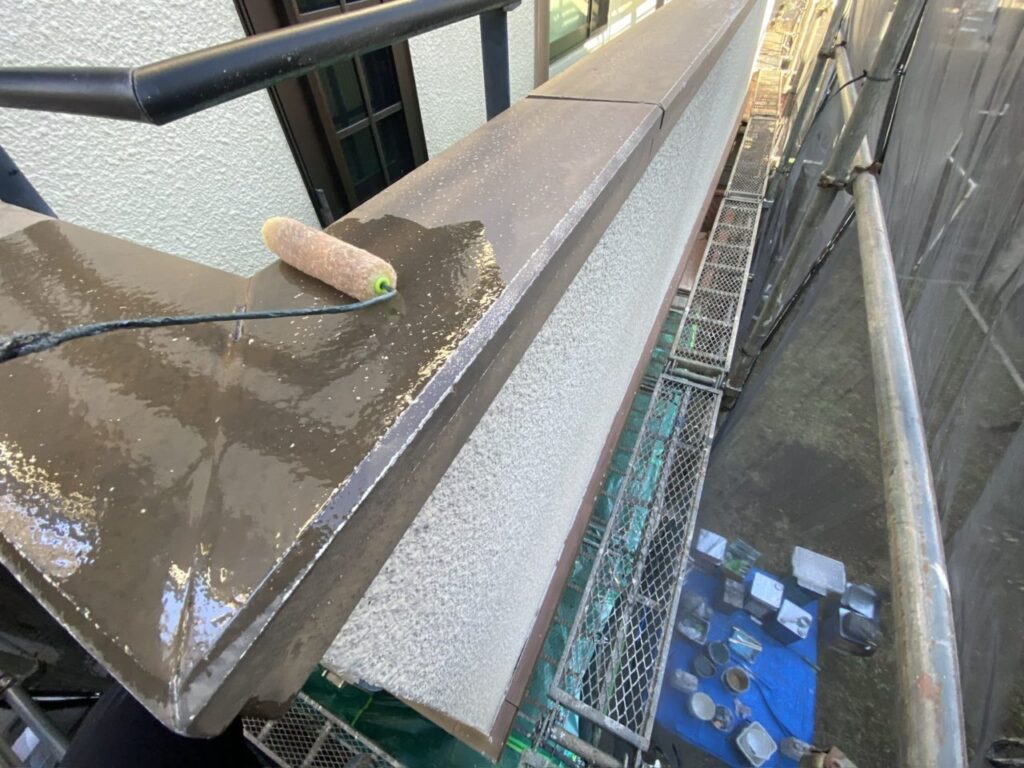 午後からは付帯部の下塗りを行いました。