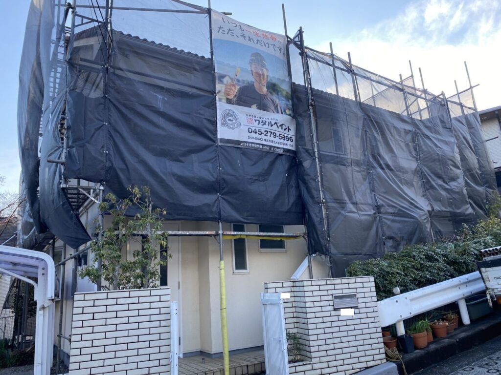 本日から保土ケ谷区藤塚町にて外壁塗装工事を開始させていただきました。