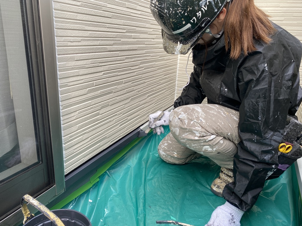 水切りは外壁の印象を引き締める大事な部分なので、細かいところも丁寧に‼️