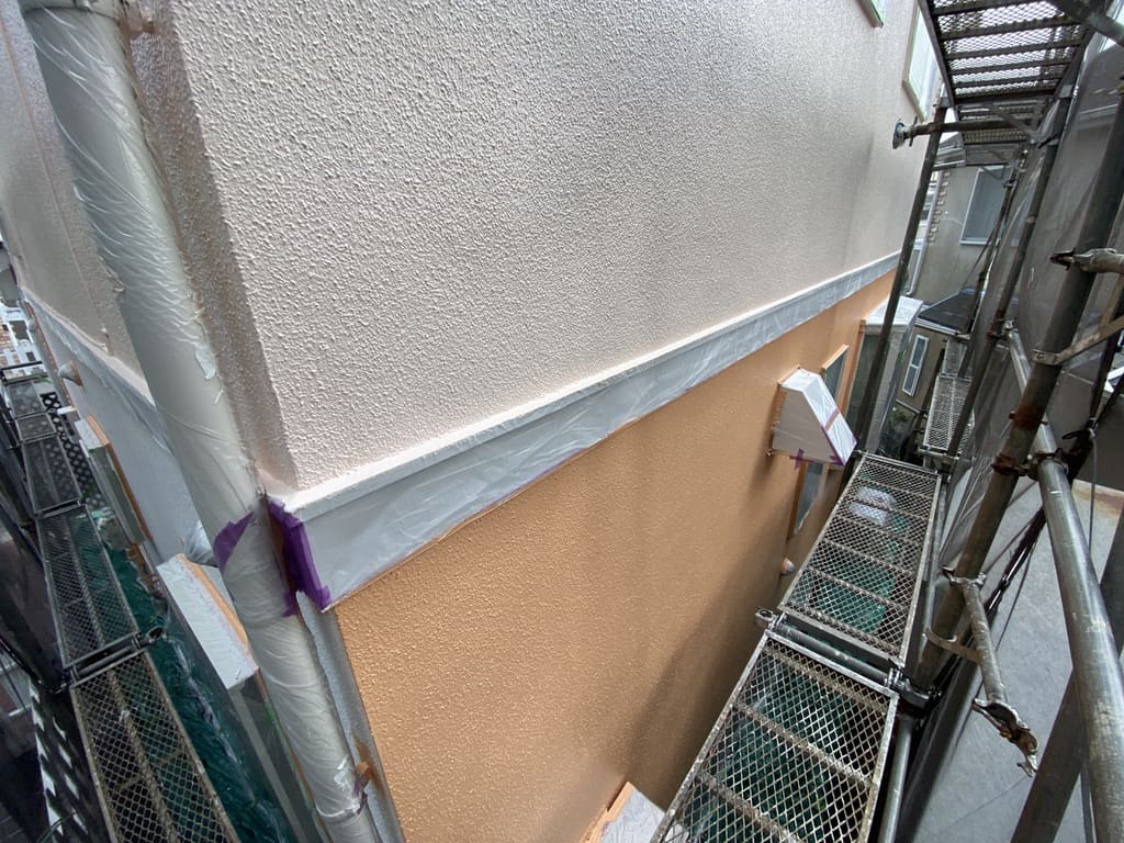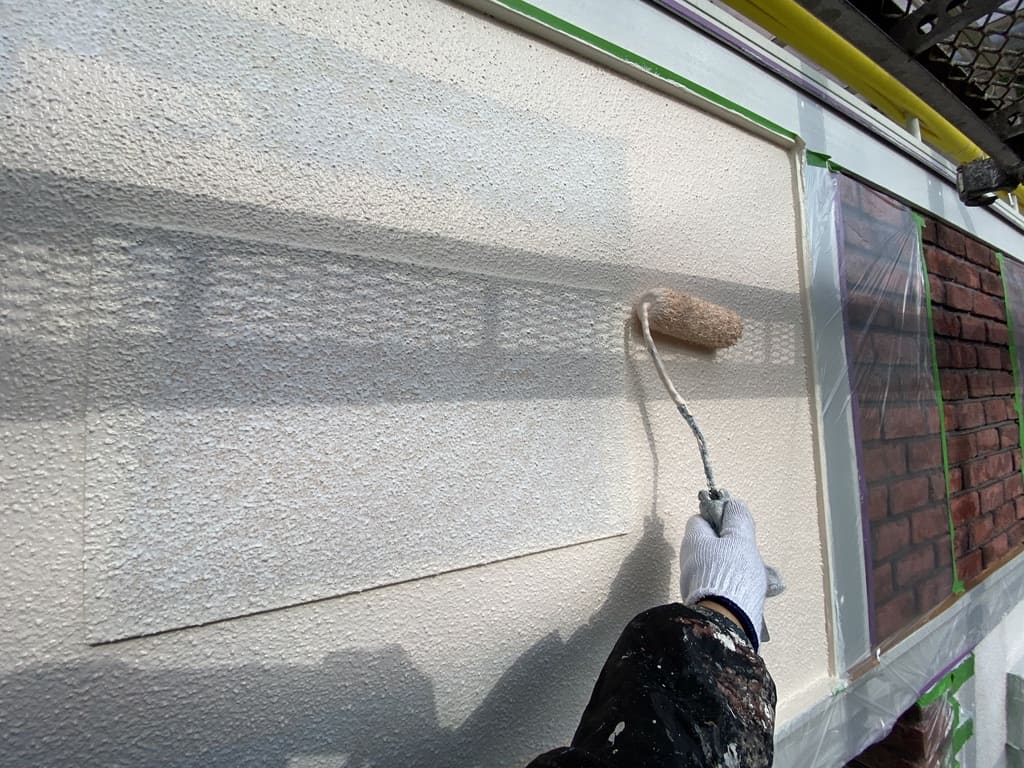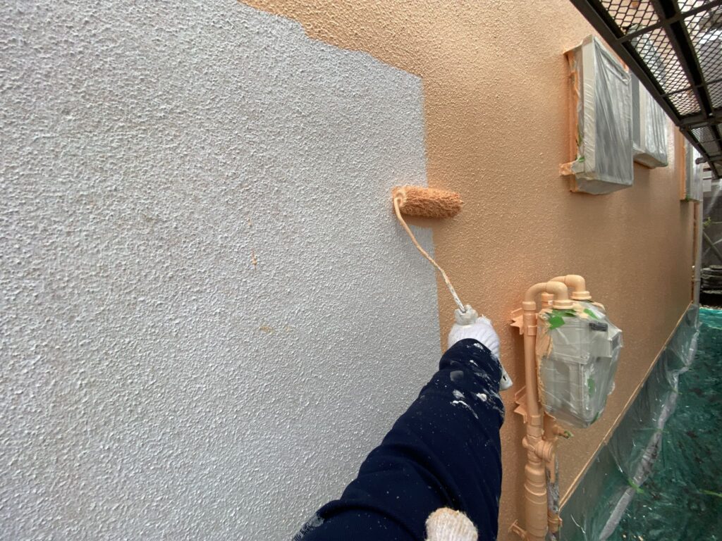 「まだ塗るの?!こんなに綺麗だから完成かと思ったよ!」とお客様に言われることはよくありますが、仕上げのつもりで中塗りをおこなってから、本当の仕上げにもう一回塗装するのが塗装工事の基本です!