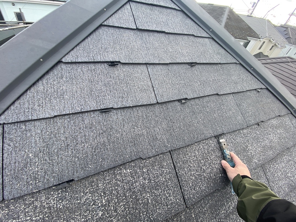 これは屋根材同士の隙間が塗料で埋まってしまい、屋根裏に雨水が溜まることを防止するための縁切り作業です!