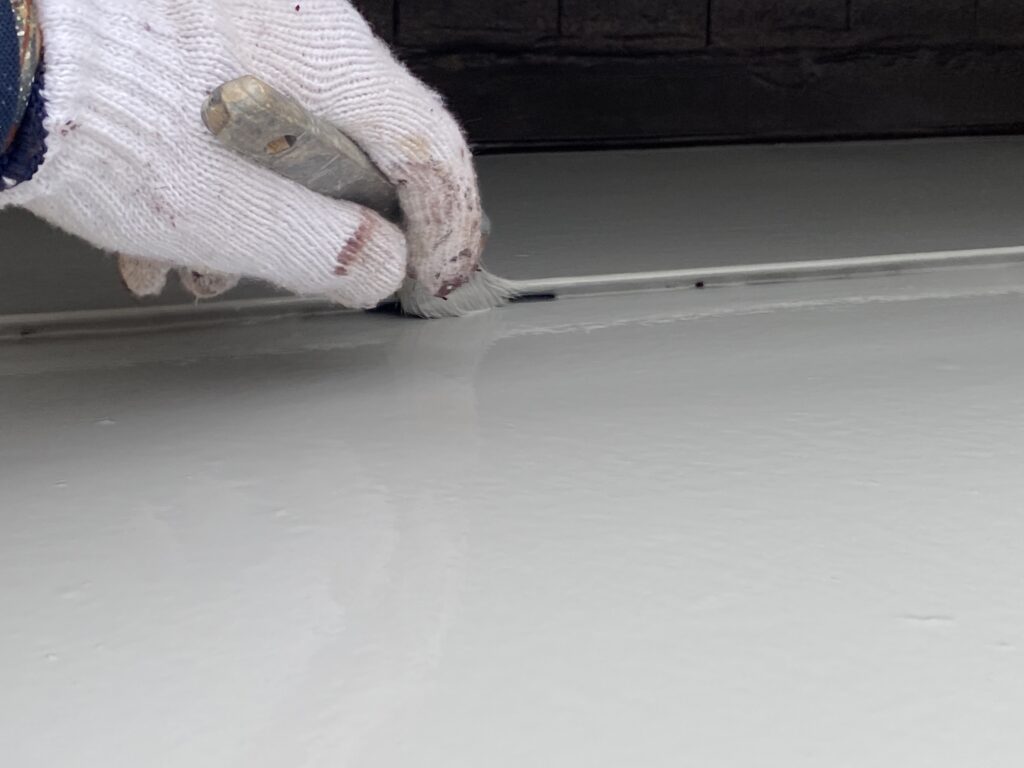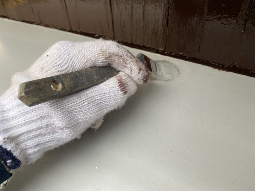 ローラーでは塗料が入り切らない部分を刷毛で塗装しています。