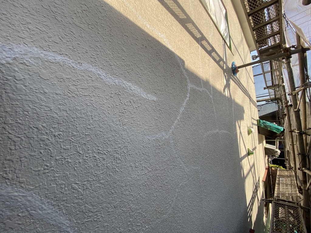 下塗りには微弾性フィラーをたっぷりと塗って、これからの安心をしっかり守れるように施工しております。