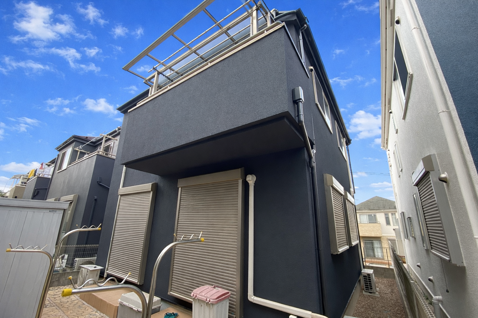 今回の塗り替えでは、「黒いおしゃれなお家にしたい」というお客様のご希望を形にするため、下地からしっかりと時間をかけて施工させていただきました。