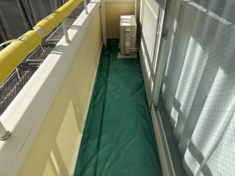 屋根の中塗りと養生作業