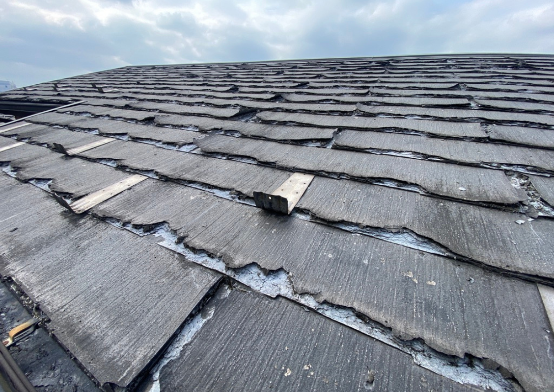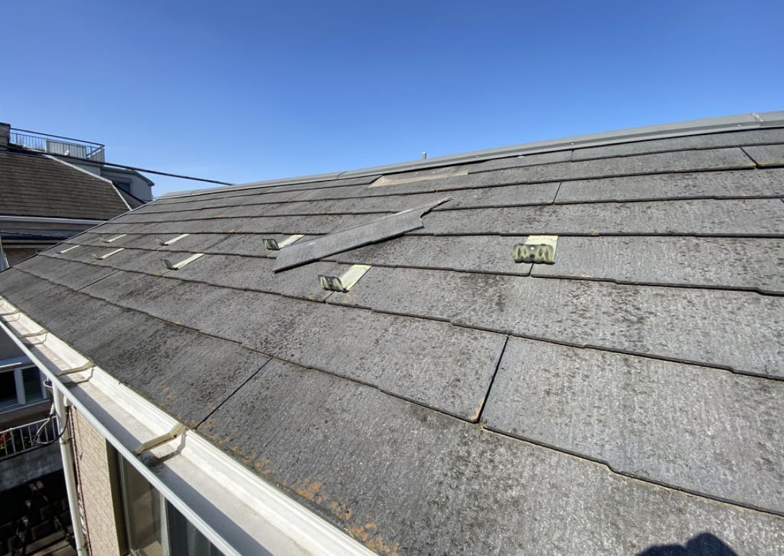屋根が割れて落ちそうになっていることに気づいたお施主様からご連絡をいただき現地調査をさせていただきました。
