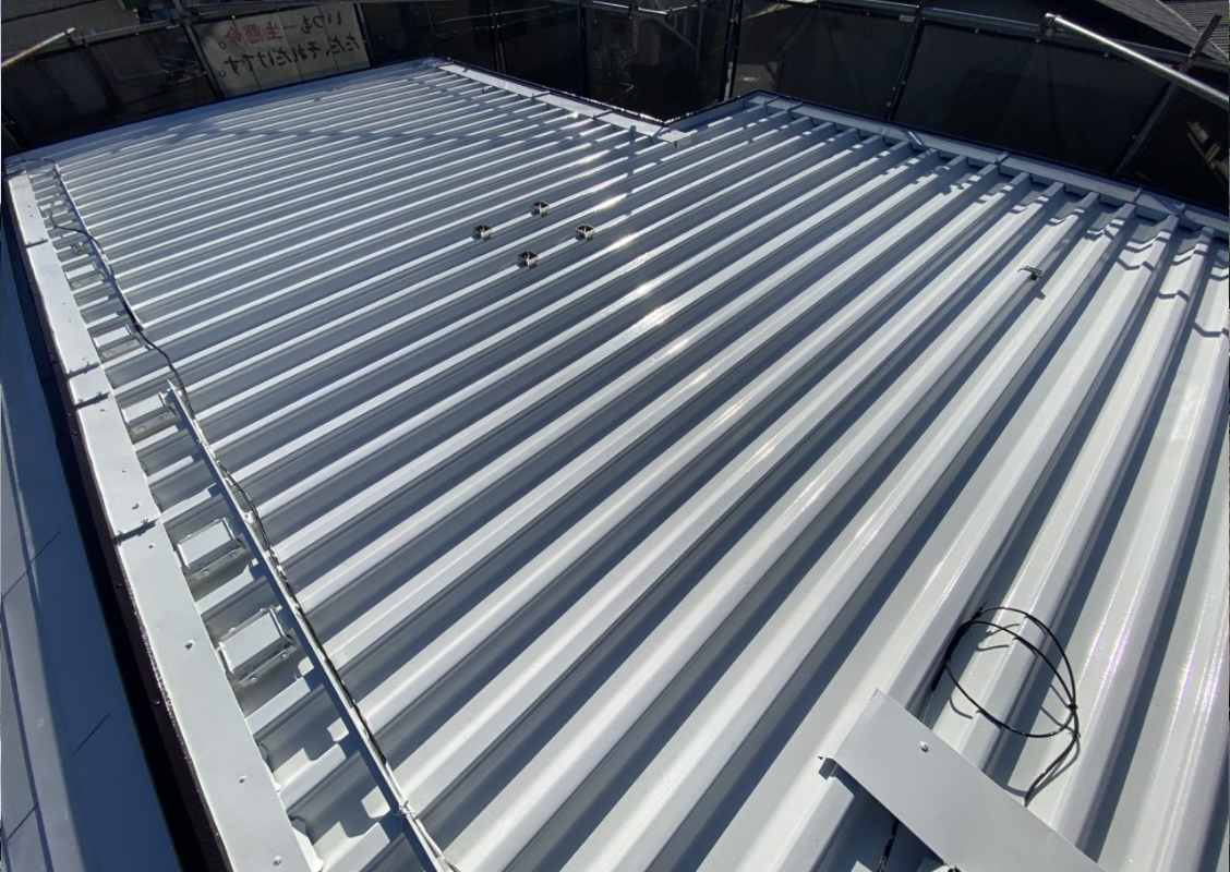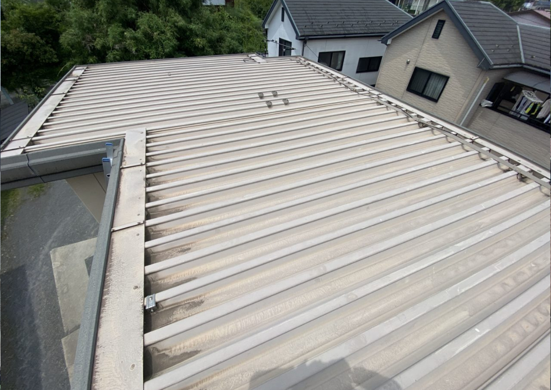金属製の折半屋根ということもあって2階の部屋の中の暑さについてご相談をいただいたので今回遮熱塗装のご提案をさせていただきました。