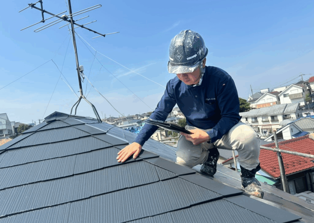 まずは屋根をプロの塗装技術者が調査診断いたします。直接屋根の上に登って、しっかりと屋根の状態を確認いたします。